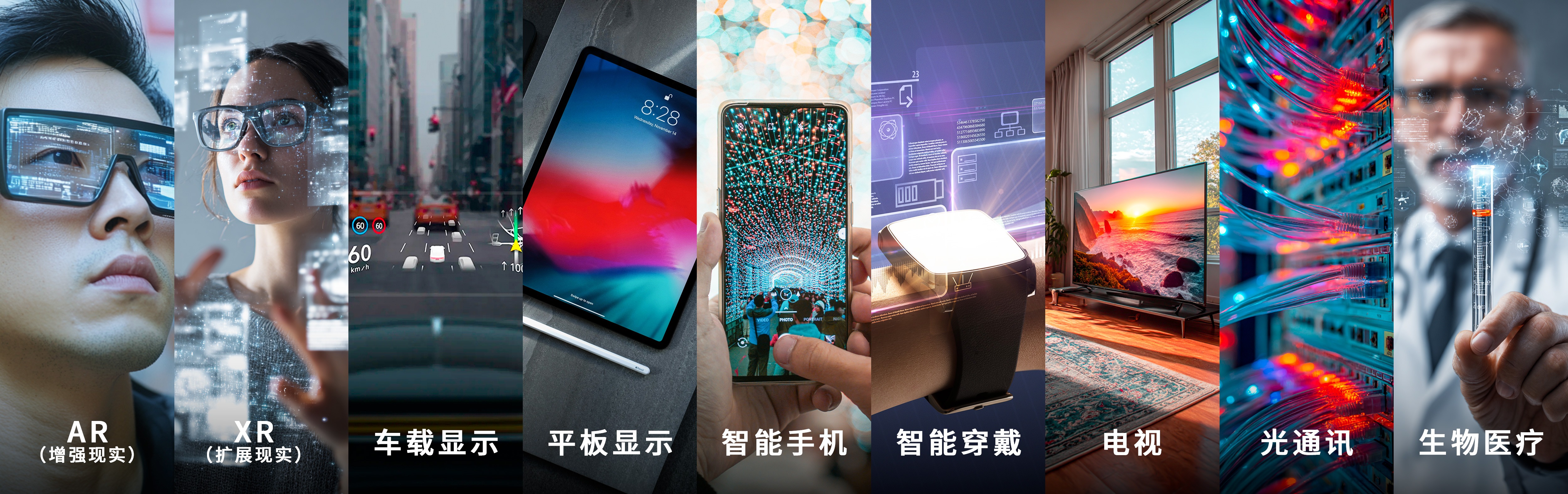 •采用单片键合和硅基CMOS驱动技术,能够制作小尺寸的Micro-LED微显示屏,凭借其超高亮度和超高像素密度等特性,可以应用在AR/VR、HUD和瞄准镜等领域。